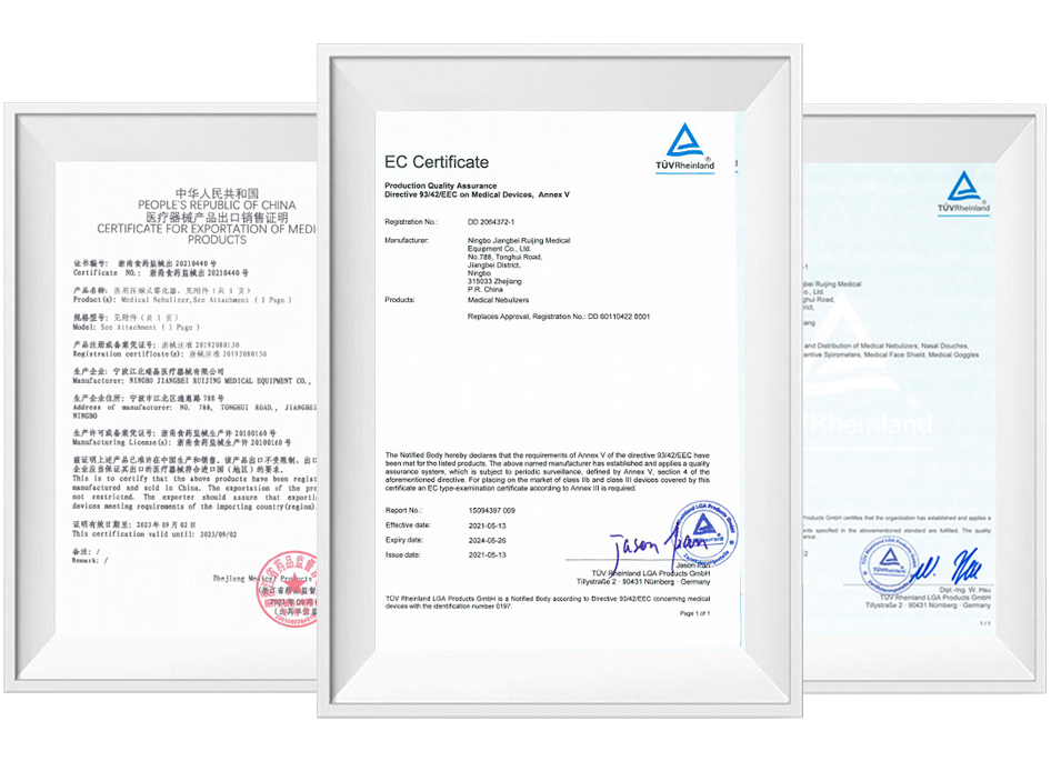 目前已自主研發(fā)20多款醫(yī)療設(shè)備和器械產(chǎn)品。擁有“瑞騰”自主霧化器品牌,取得了歐盟EN ISO 13485:2016質(zhì)量管理體系證書(shū)、CE0197標(biāo)準(zhǔn)認(rèn)證以及CFDA國(guó)內(nèi)注冊(cè)證書(shū)。